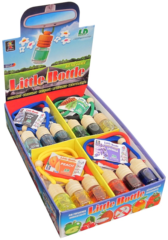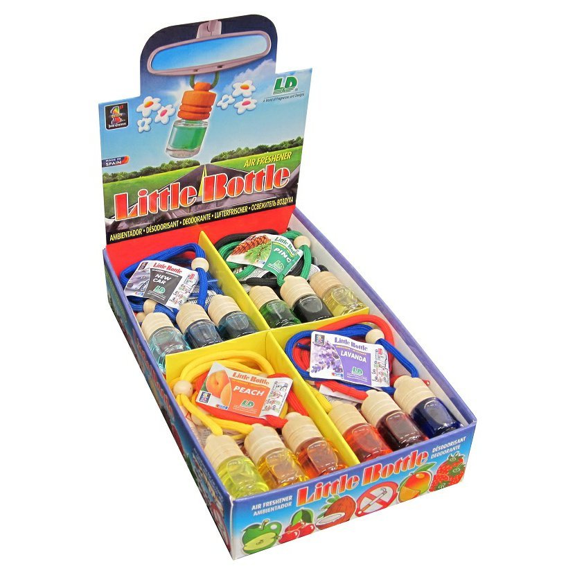 Voňavý box s mixom 24 ks Little Bottle, ktoré Vás prekvapí kvalitou a intenzitou vône. Sklenené fľaštičky s objemom 4,5 ml sú malé a nenápadné. Vďaka vysoko koncentrované vôňu a drevenému difúzora je vôňa stále a optimálne rozptylovaná do interiéru vozidla a vydrží až 60 dní.