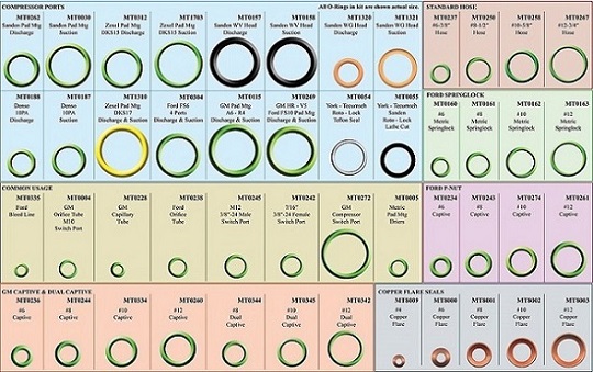 Súprava najpoužívanejších O-krúžkov autoklimatizácie.